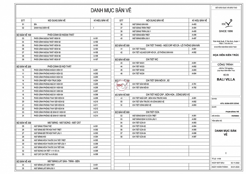 Đồ án họa viên kiến trúc – HV Phạm Đăng Trí – HCK66
